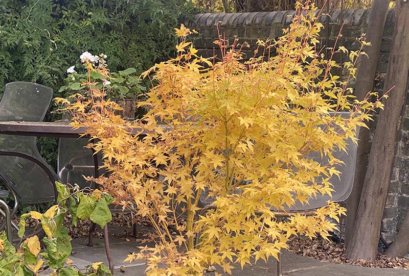 A few colours from the garden – such as my lovely little acer which, when it has dropped its leaves, will be displaying glowing yellow, red tipped stems all through the winter.