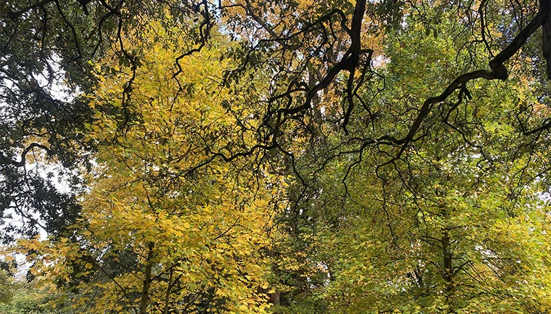 But it also has glorious grounds on a gently rising hill overlooking the valley – and some stunning trees all now turning colour.