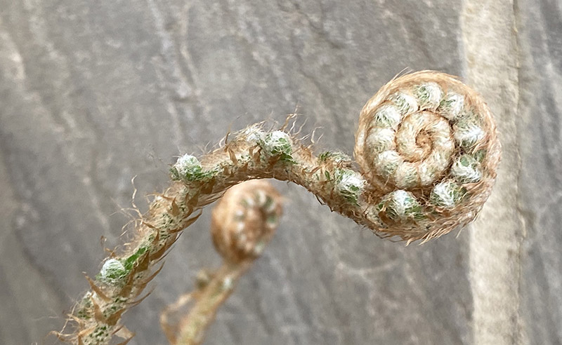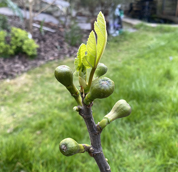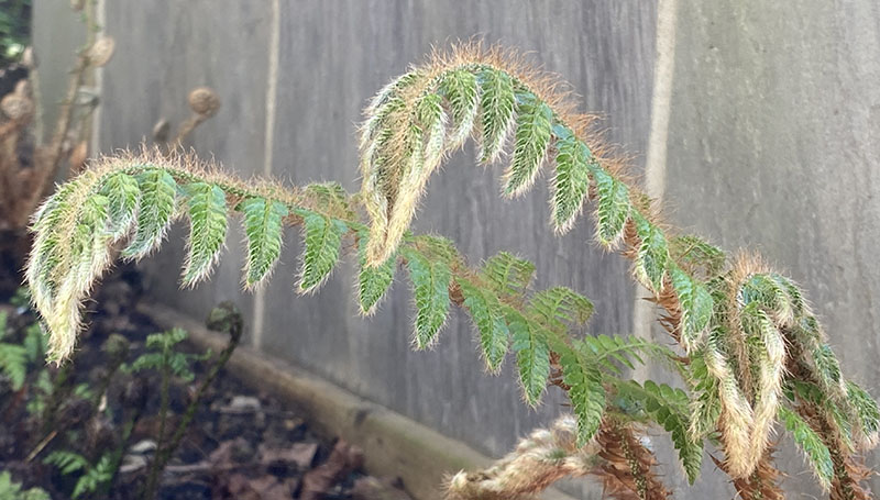 And then there is the fig – and the ferns….. The fig seems to be doing splendidly – but do I neet to protect those little fruits from predators? While the ferns are weaving their usual magic. I so love watching them gradually unfurl from those tight little coils into feathery, floaty leaves.