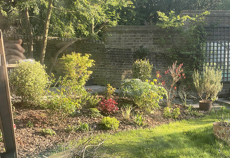 Over the other side of the garden, I subjected the climbers on the fence to a fiercesome hair cut. The bed they are in was the first thing that I was able to plant when the builders were still here five years ago and I was so excited that I vastly over planted: three jasmine, a clematis montana, a solanum and a Blush Noisette rose in a space which really needed an absolute maximum of three plants! As a result it was a total jungle and the clematis and solanum had climbed far into the holly tree and the birch behind them.